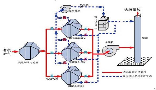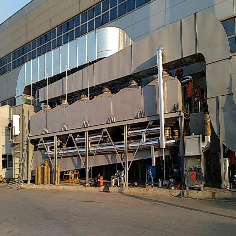 設(shè)備原理: 在催化劑的作用下,有機(jī)廢氣在較低的起燃溫度下(250~400℃),發(fā)生無(wú)焰燃燒,碳?xì)浠衔锉谎趸纸鉃?/span>CO2和H2O,同時(shí)放出大量熱能,從而達(dá)到去除廢氣中的有機(jī)物的目的,該方法是凈化有機(jī)廢氣、消除惡臭的有效手段之一。 含VOCs的廢氣經(jīng)風(fēng)機(jī)導(dǎo)入換熱器,經(jīng)由換熱器加熱后,再通過(guò)催化燃燒器,這時(shí)廢氣已被加熱至催化分解溫度,通過(guò)催化劑床,催化分解會(huì)釋放熱能,而VOCs被分解為二氧化碳及水。經(jīng)凈化后氣體溫度升高,再次進(jìn)入換熱器與未經(jīng)處理的VOC廢氣進(jìn)行熱交換,以此減少能源的消耗。后,凈化后的氣體從煙囪達(dá)標(biāo)排放到大氣中。 催化劑:優(yōu)選貴金屬催化劑(Pt、Pd和Au),具有起燃溫度低(280℃起燃),去除效率高(>95%),具有較高催化活性,同時(shí)還耐高溫、抗氧化、耐腐蝕。催化劑改變化學(xué)反應(yīng)速度而本身又不參與反應(yīng),反應(yīng)前后基本沒(méi)有消耗,使用壽命長(zhǎng)。 廢氣預(yù)處理:為了避免催化劑床層的堵塞和催化劑中毒,廢氣在進(jìn)入床層之前必須進(jìn)行預(yù)處理,以除去廢氣中的粉塵、液滴及催化劑的毒物。 預(yù)熱裝置:催化劑都有一個(gè)適宜的催化活性溫度,對(duì)催化燃燒來(lái)說(shuō)稱為催化劑起燃溫度,必須使廢氣和床層的溫度達(dá)到起燃溫度才能進(jìn)行催化燃燒。對(duì)于排出的廢氣本身溫度就較高的場(chǎng)合,如漆包線、絕緣材料、烤漆等烘干排氣,溫度可達(dá)300℃以上,則不必設(shè)置預(yù)熱裝置。